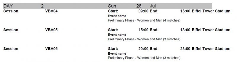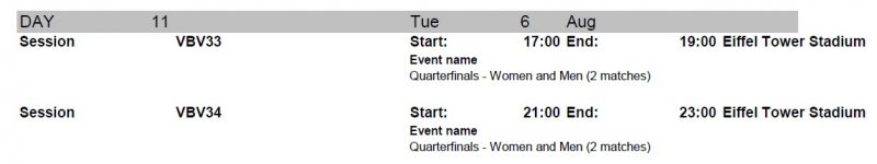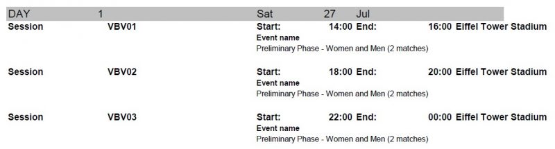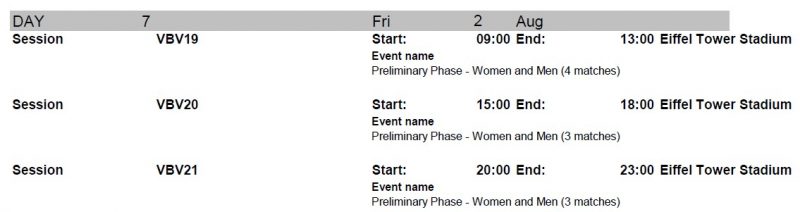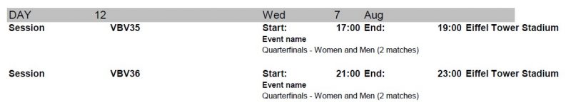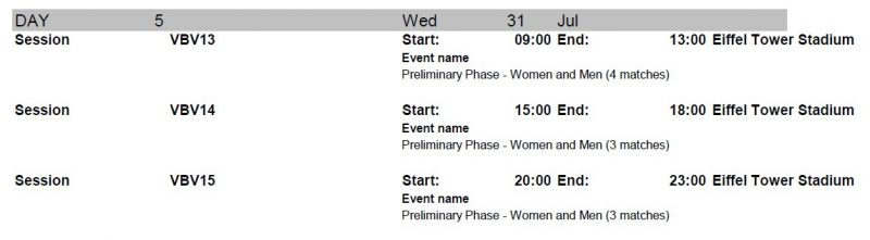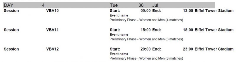 Wann sind die Wettkämpfe im Beachvolleyball Paris?