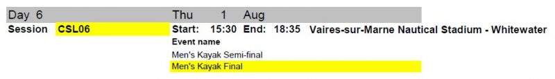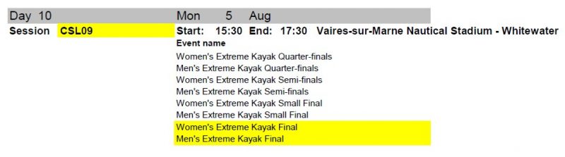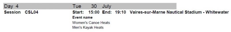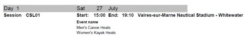 • Kanu Slalom vom 27.07.2024 bis 05.08.2024