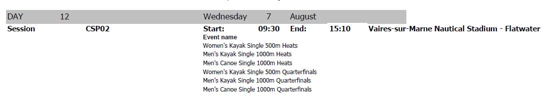 • Kanu Sprint vom 06.08.2024 bis 10.08.2024